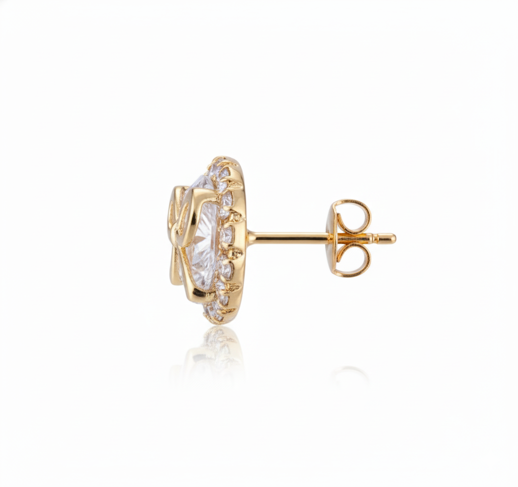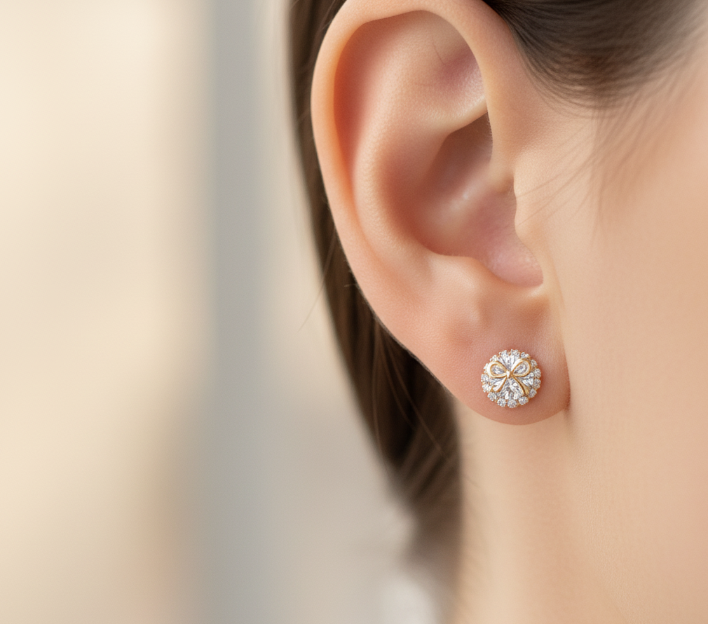 眩い輝きを放つメインストーンとダイヤの組み合わせが、顔周りを明るく見せ、特別なシーンにも映える仕上がり。プレゼントとしても喜ばれる王道のエレガントスタイルです。
